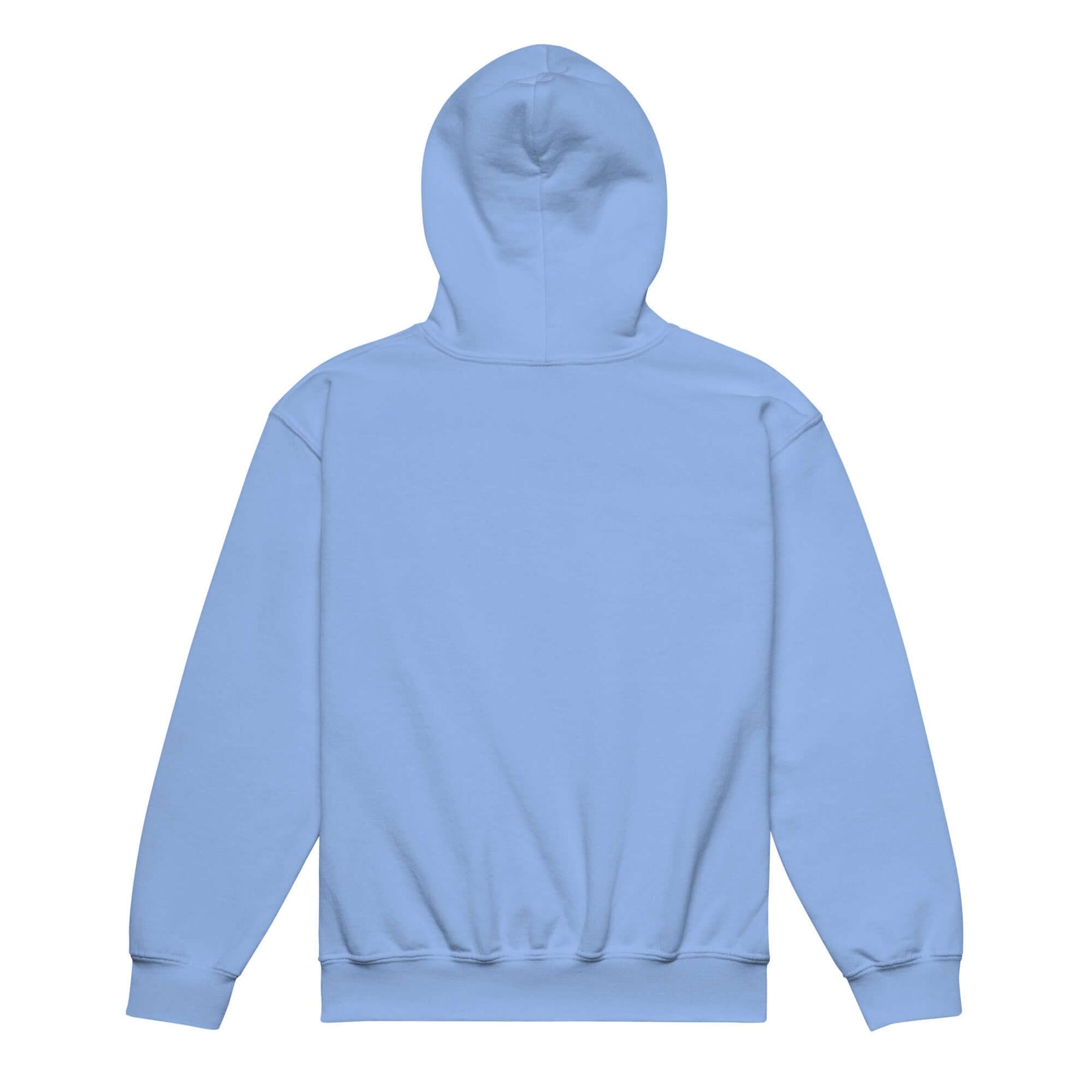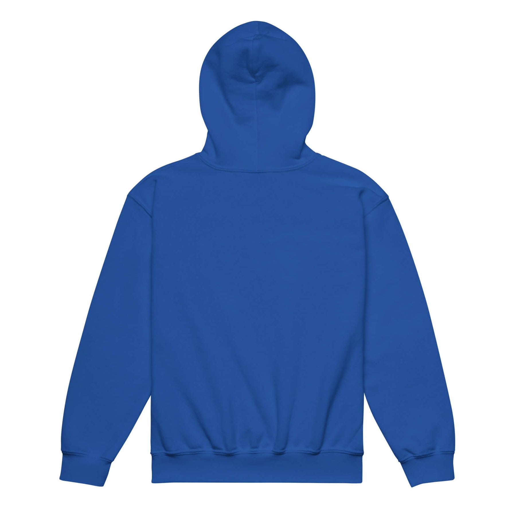 Back view of the blue youth heavy blend hoodie, showcasing its comfortable and durable design.